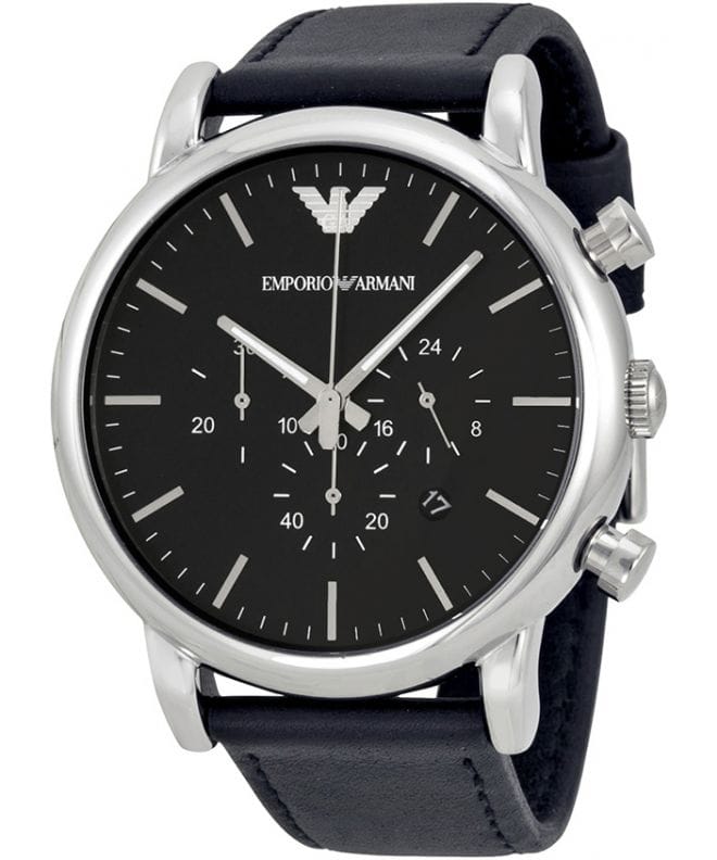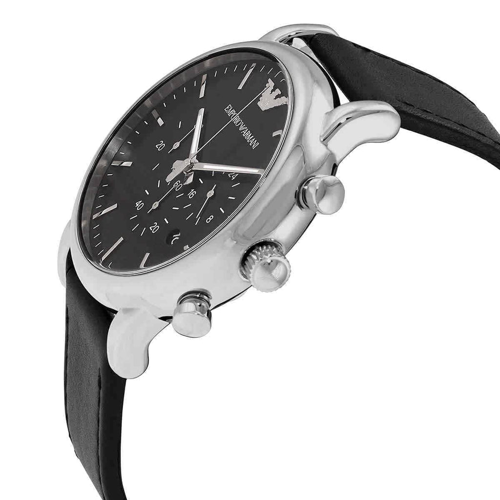 Emporio Armani Luigi Chronograph Black Dial Black Leather Watch For Men - AR1828