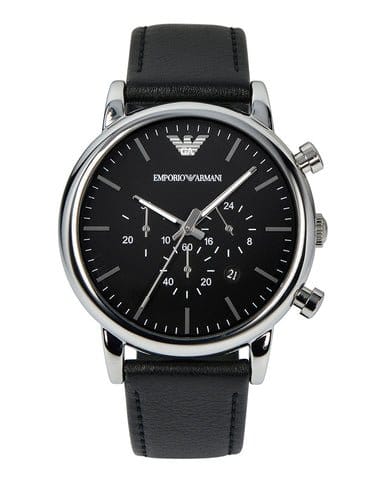 Part of the Classic Collection, the Gents Emporio Armani Luigi Watch is a stylish timepiece that boasts a sleek on-trend look. There’s also a cool three-dial chronograph which lets you make accurate time measurements. Powerful quartz movement ensures precise timekeeping, too. The shiny 41mm stainless-steel case surrounds the jet-black dial which has elegant dark-grey hour baton markers, luminous hands and the famous Emporio Armani branding and logo at 12 o’clock. The black leather strap adds an extra touch of class and luxury. If you’re looking for a stylish timepiece that is versatile enough to pair with any outfit, the Gents Emporio Armani Luigi Watch more than fits the bill.