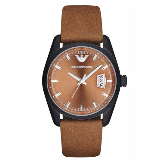 Emporio Armani Sportivo Analog Brown Dial Brown Leather Strap Watch For Men - AR6080