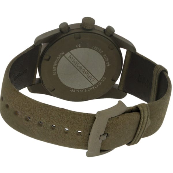 Emporio Armani Sportivo Chronograph Beige Dial Brown Leather Strap Watch For Men - AR6078