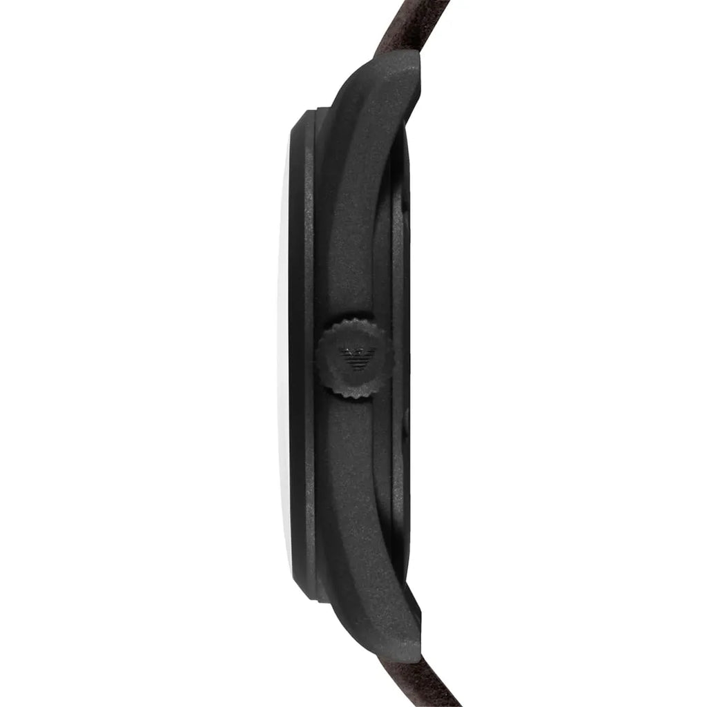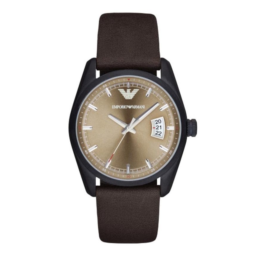 The Mens Emporio Armani Watch AR6081 (AR6081) is available to buy from Shade Station. It features a brown leather strap, a carbon coated stainless steel case and has a brown sunray with three hand movement and date window dial. The AR6081 comes with an official Emporio Armani Watches 2 year guarantee.