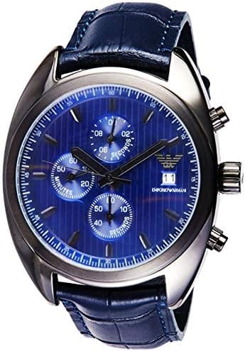 Emporio Armani Sportivo Chronograph Blue Dial Blue Leather Strap Watch For Men - AR6126