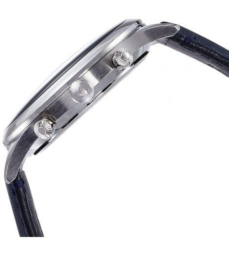 22mm Blue Leather Strap with Stainless Steel Buckle.