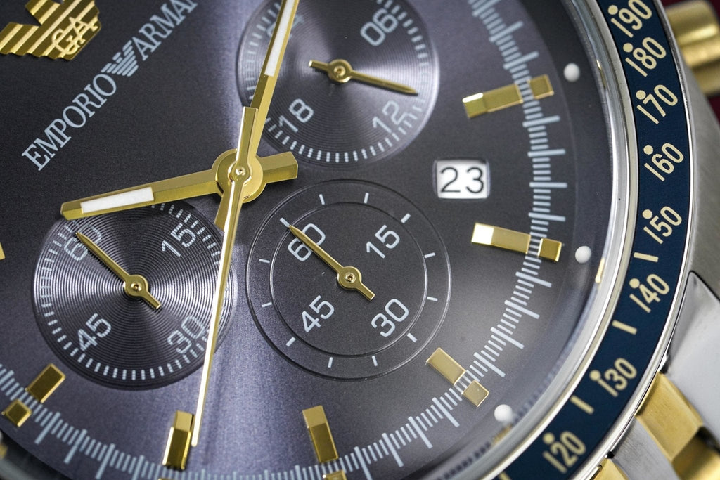 Emporio Armani Tazio Chronograph Blue Dial Two Tone Stainless Steel Watch For Men - AR6088