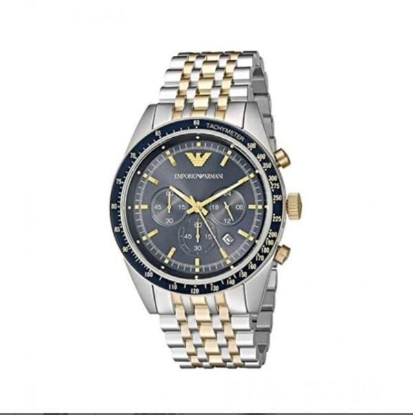 Emporio Armani Tazio Chronograph Blue Dial Gold & Silver Stainless Steel Strap Watch For Men - AR8030