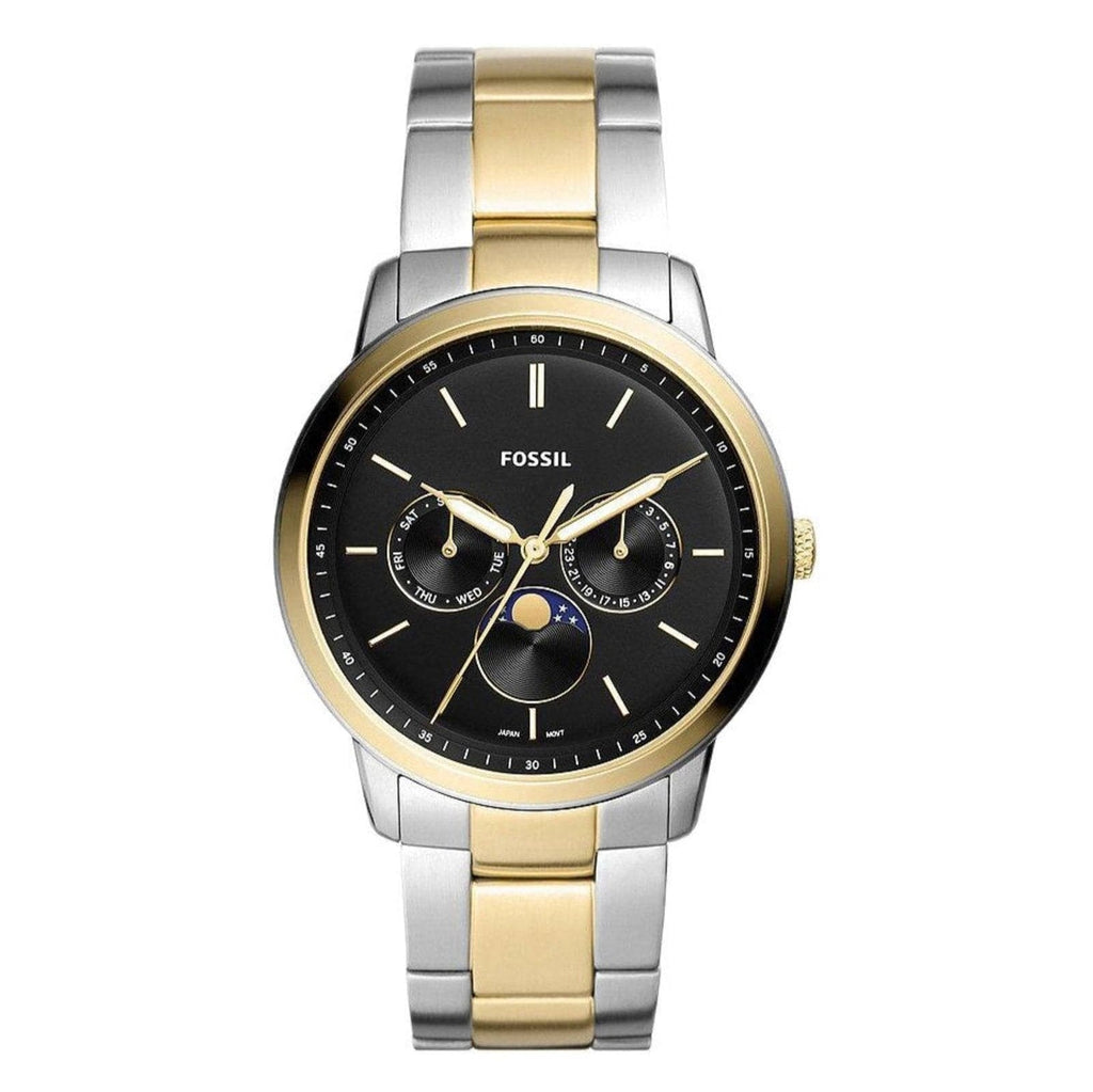 Fossil Neutra Moonphase Multifunction Black Dial Two Tone Steel Strap Watch for Men - FS5906