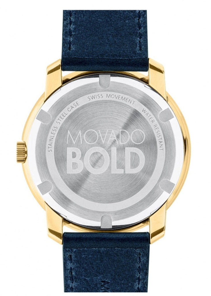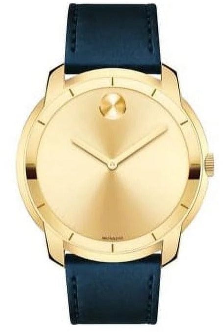Movado Bold Gold Dial Blue Leather Strap Watch For Men - 3600469