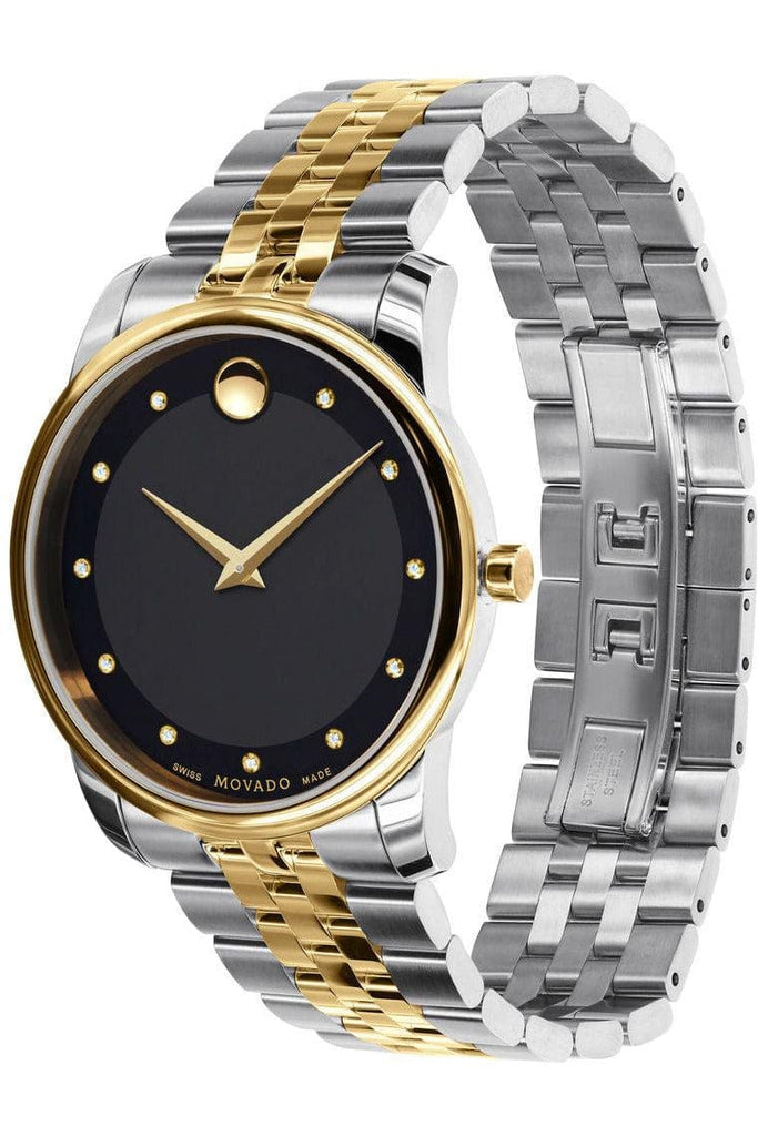 Movado Museum Classic Diamonds Black Dial Two Tone Steel Strap Watch For Men - 0606879