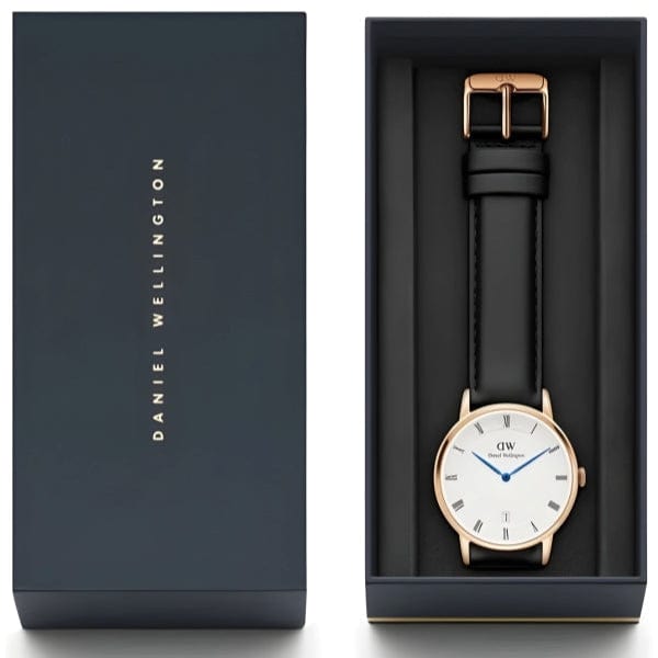 Experience timeless elegance with the Daniel Wellington Classic Sheffield Watch for Men. The sleek black leather strap and crisp white dial create a striking contrast, while the minimalist design exudes sophistication. Stay on time and in style with this iconic timepiece.