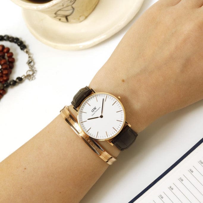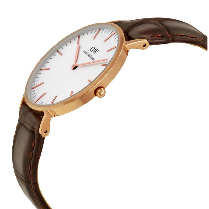 Daniel Wellington Classic York White Dial Brown Leather Strap Watch For Women - DW00100038