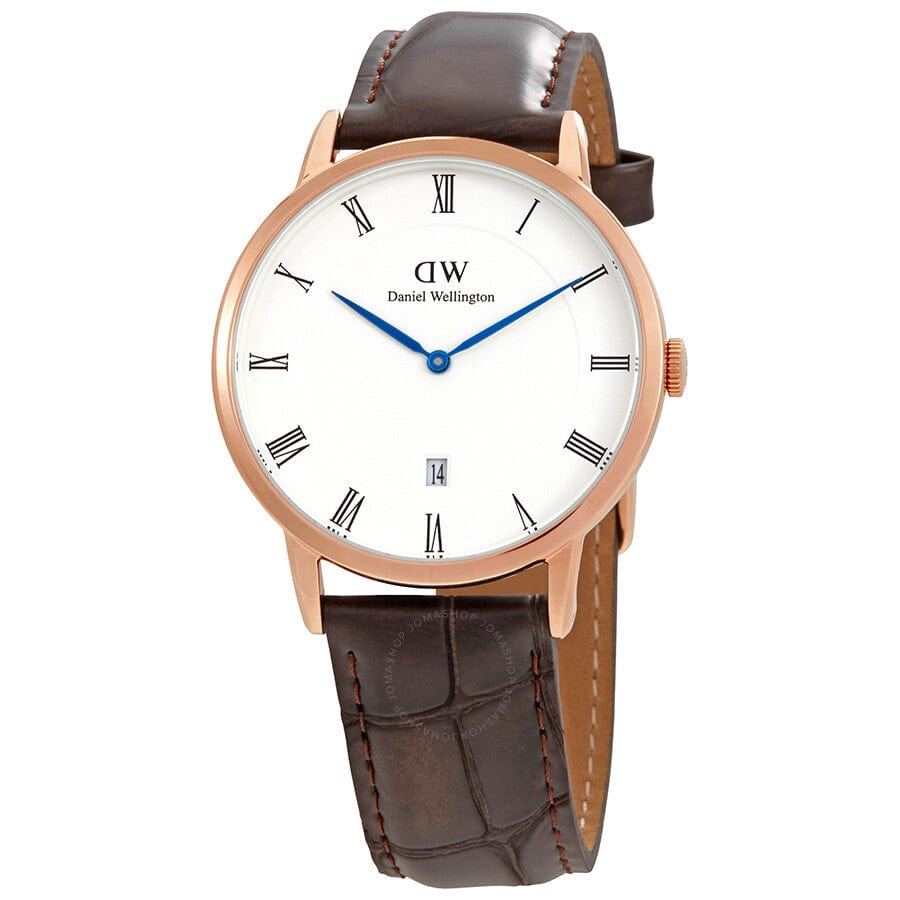 Daniel Wellington Dapper York White Dial Brown Leather Strap Watch For Men - DW00100085