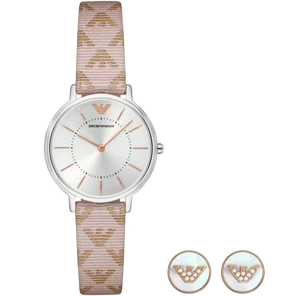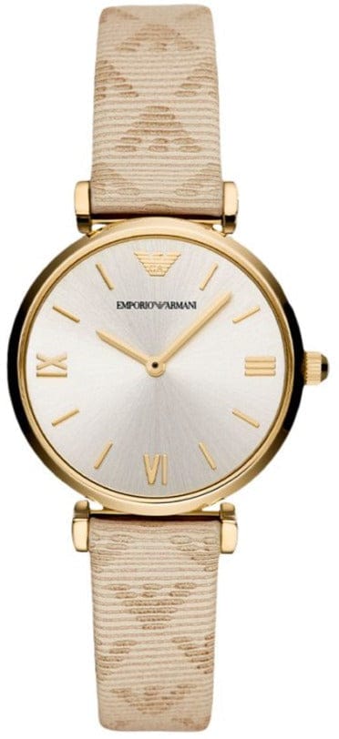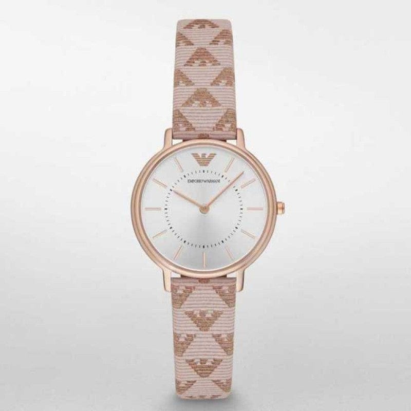 Emporio Armani Classic Kappa White Dial Brown Leather Strap Watch For Women - AR11009