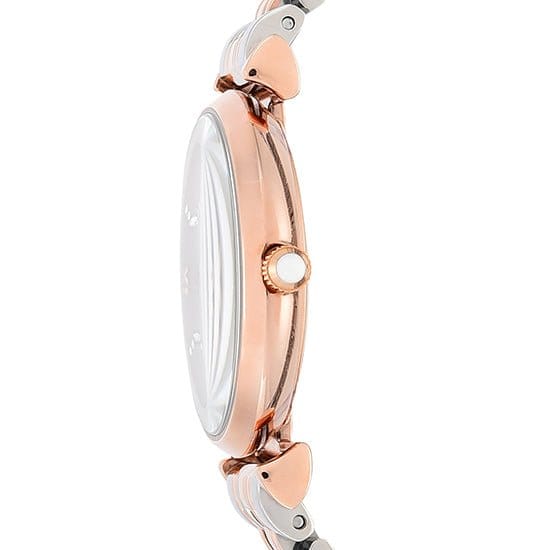 Other features include an elegant Stainless Steel & Rose Gold Plate bracelet, a reliable movement, and a secure deployment clasp for added protection.