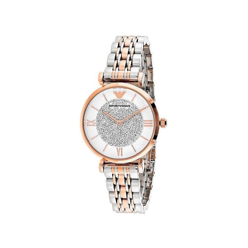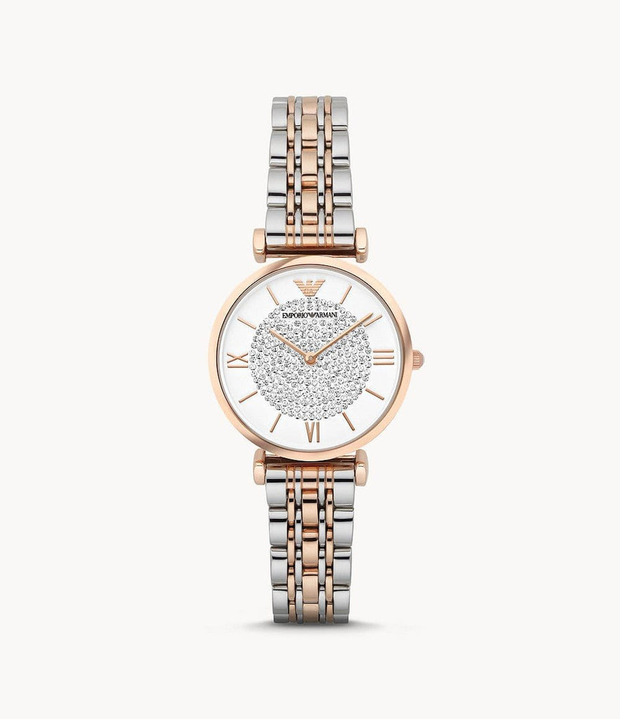 Emporio Armani Gianni T Bar White Dial Two Tone Steel Strap Watch For Women - AR1926