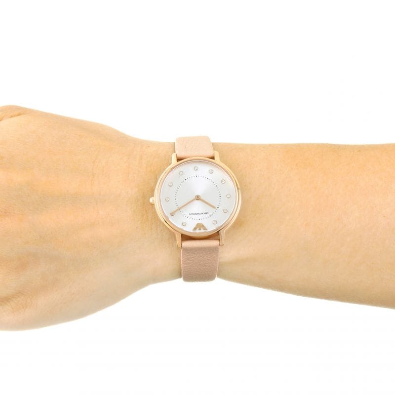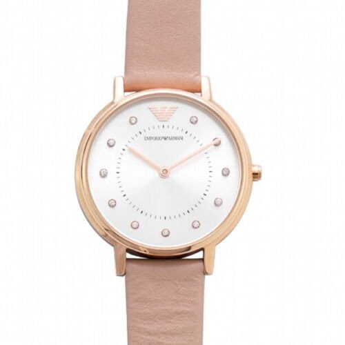 Emporio Armani Kappa Rose Gold & White Dial Beige Nude Leather Strap Watch For Women - AR2510