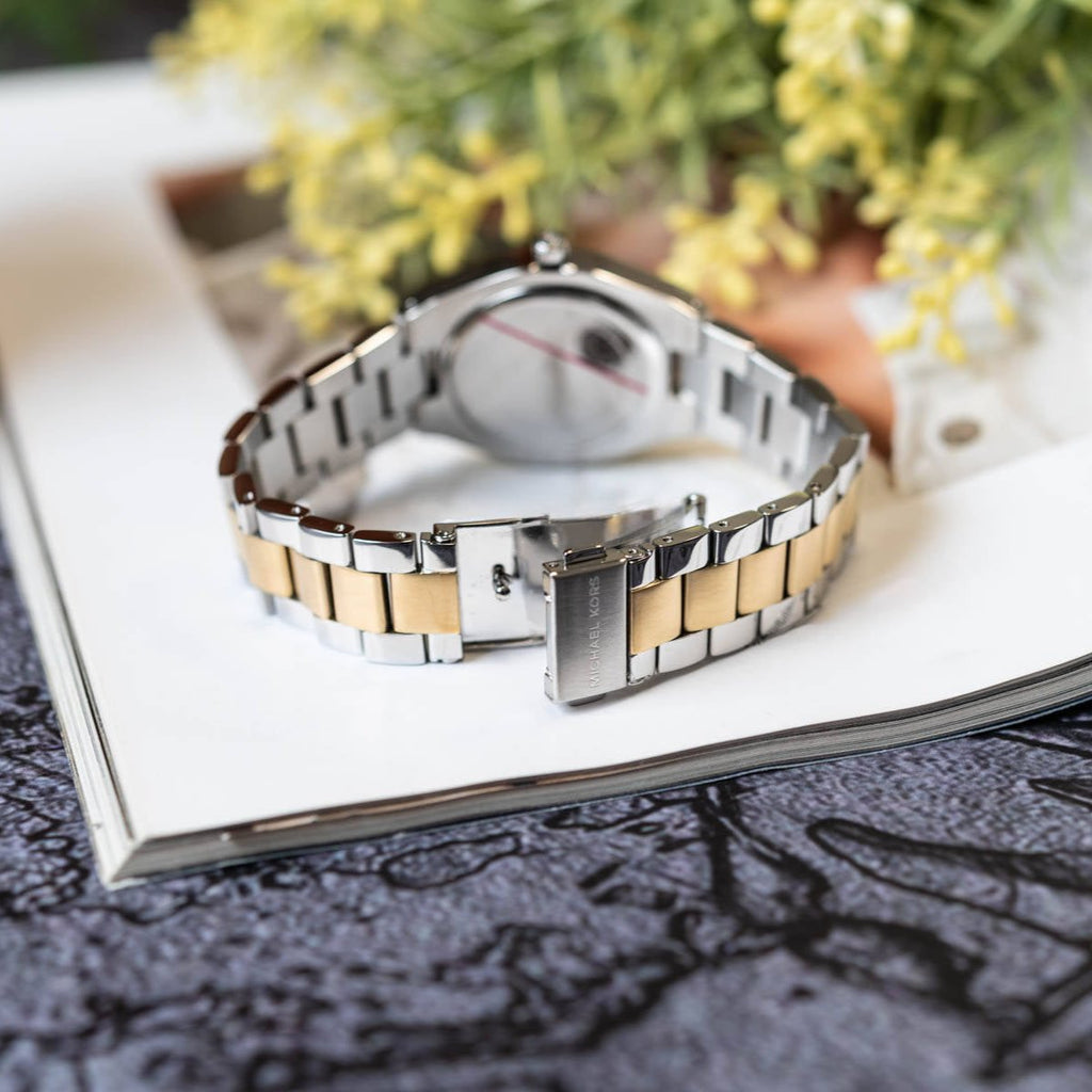 Michael Kors Lennox Three-Hand White Dial Two Tone Steel Strap Watch for Women - MK7464