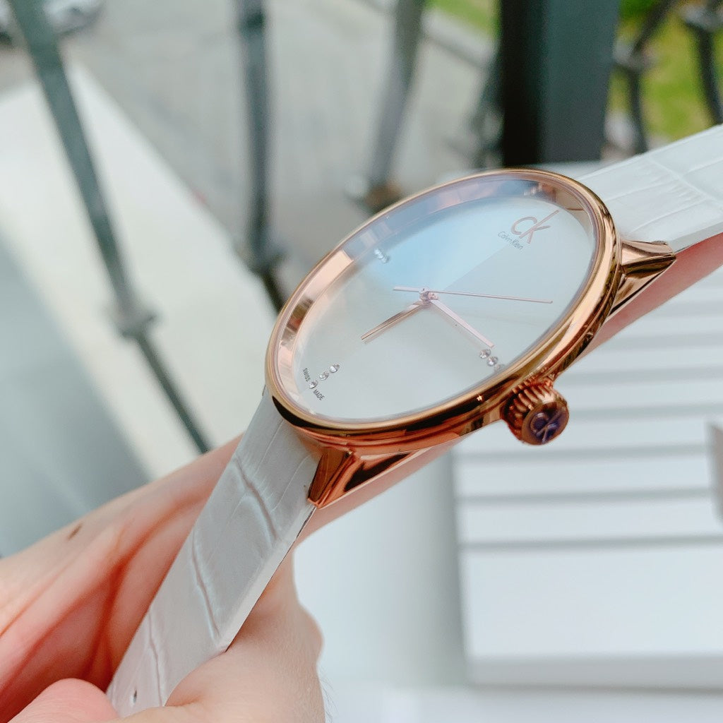 Calvin Klein Accent White Dial White Leather Strap Watch for Men - K2Y2X6KW