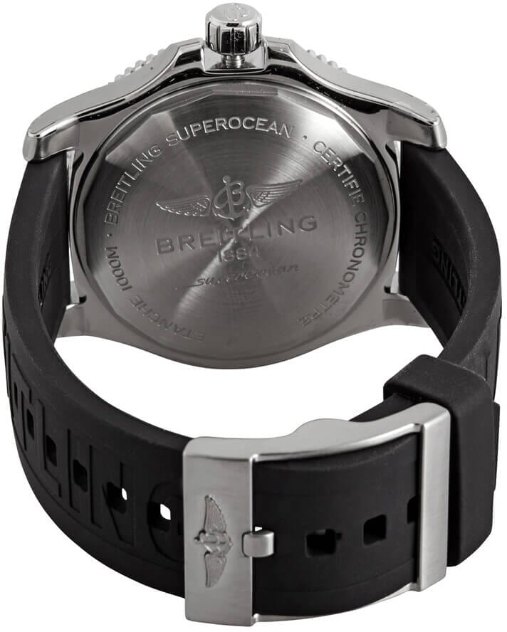 Breitling Superocean Automatic 44 mm watch. Model reference: A17367021I1S1. Steel case. Yellow dial. Automatic movement. Black rubber strap with steel pin buckle. Swiss made. Watch comes in original packaging, with set of documents and 2 years warranty.
