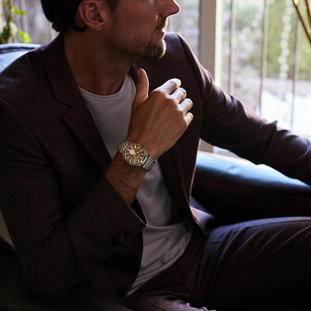 This new TSUYOSA model NK5010-51X is the modernized version with a larger case (40 mm), luminous hands and luminous indexes. This TSUYOSA Small Second not only has a new dial variant, but also another mechanical caliber. This mechanical caliber is equipped with a power reserve of 60 hours and guarantees the user an exceptional level of comfort. The 8322 caliber ensures precise timekeeping, while the resistant sapphire glass resists scratches. The screw-down glass case back ensures safe handling. Many elements of the original watch have been saved, such as the crown, which sits at the 4 o'clock position to keep the slim silhouette of the watch.