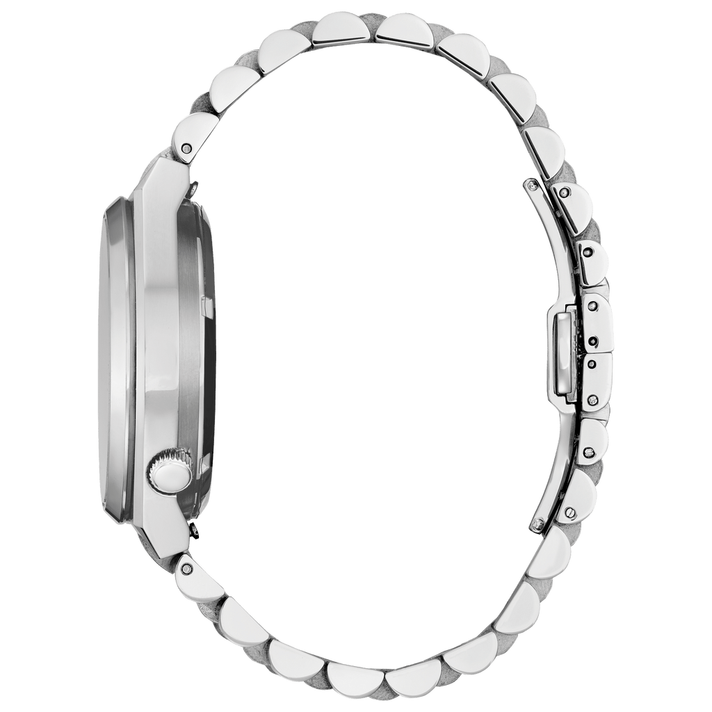 The launch of the TSUYOSA series was an important collection in CITIZEN's portfolio, as it marked a time when CITIZEN used stainless steel for its models, while many other affordable watches were made of brass. The TSUYOSA collection in steel was more robust and refined and was characterized by an elegant finish, including a smooth finish on the top of the case that contrasted with the mirror polish on the bezel and the central elements of the bracelet. The models became known for their luxurious design and attention to detail and were very popular in the late 1990s and 2000s.