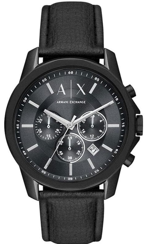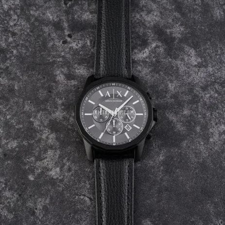 Armani Exchange Banks Chronograph Black Dial Black Leather Strap Watch For Men - AX1724