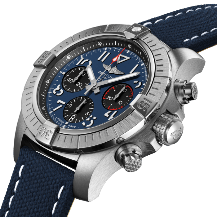 Bold, extremely robust and shock resistant, the Avenger B01 Chronograph 45 combines precision with a powerful design. As a true Breitling Avenger, it can be used wearing gloves and offers unrivalled safety and reliability to any airborne adventurer. The Avenger B01 Chronograph 45 features a sturdy 45mm stainless steel case, anthracite or blue dial and a choice of a stainless steel bracelet, or matching black or blue military leather strap that fits either a stainless steel pin buckle or folding clasp. Thanks to its rugged bezel and its special grip-pattern on the crown and chronograph pushers, the Avenger B01 Chronograph 45 can be easily operated wearing gloves. This edition is limited to 500 pieces.