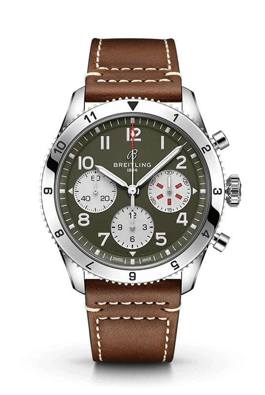 Breitling Avi Chronograph 42 Curtiss Warhawk Green Dial Brown Leather Strap Watch for Men - A233802A1L1X1