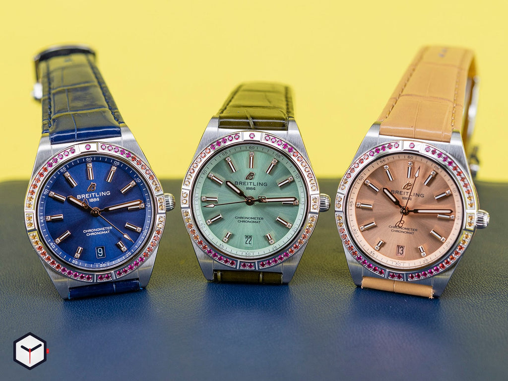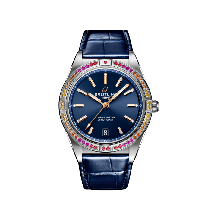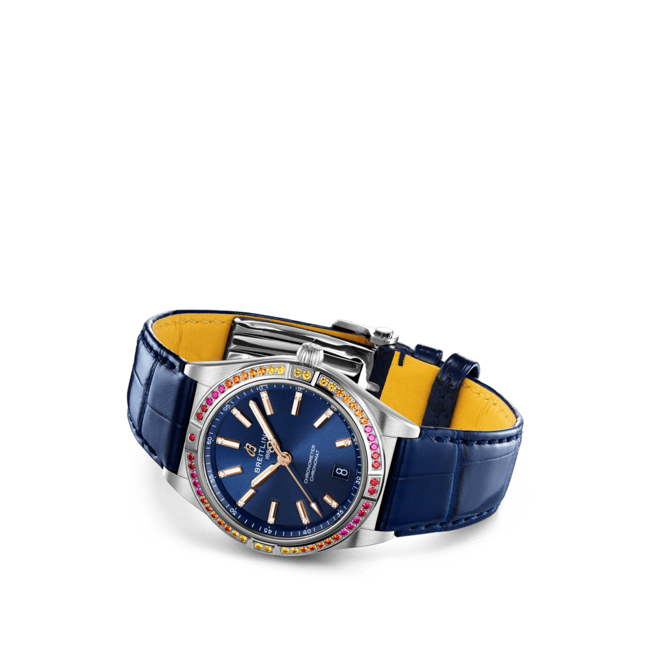 With eye-catching colors and luminescence, the Chronomat South Sea Capsule Collection evokes the intoxicating vibes of summer, marine life and lush greenery. Available in three distinctive versions, the Chronomat Automatic 36 South Sea Capsule Collection is the spirited sister of Breitling’s latest Chronomat for women. This elegantly modern retro-inspired watch is for ladies looking to stand out from the crowd. Featuring special lacquered dials with golden indexes and hands, diamond-set hour markers and cocktail-hued gem-set bezels, the Chronomat South Sea are paired to color-matched shiny alligator straps with folding clasps. The Chronomat Automatic 36 South Sea are powered by the Breitling Caliber 10, a COSC-certified chronometer.