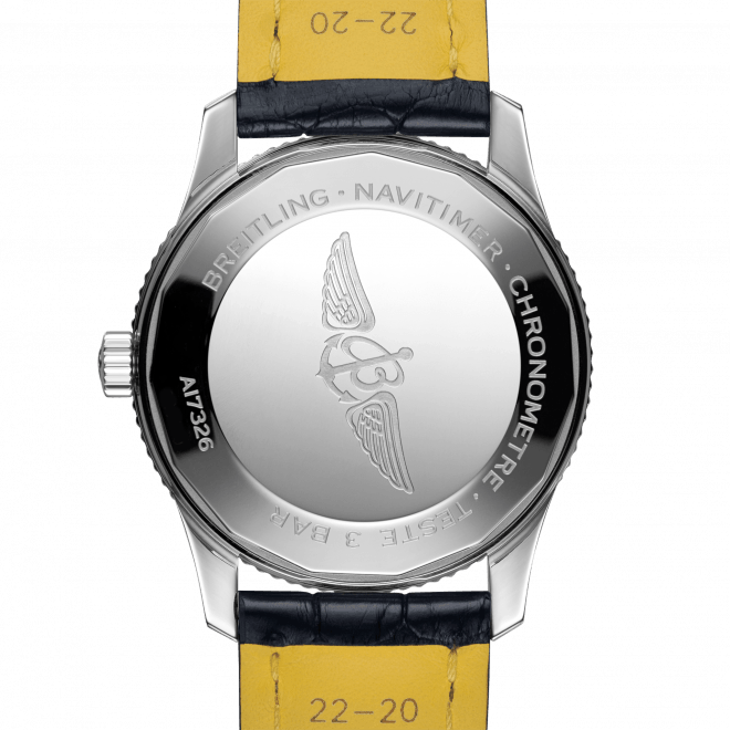 The Breitling Navitimer 1 Automatic 41 gives a different take on the Navitimer. Effortlessly combining the historic appeal of a true icon with the refinement of a sophisticated, contemporary timepiece. The watch features Breitlingās famous circular slide rule, as well as a distinctive beaded bezel in a 41mm stainless steel case. Its elegant, three-hand dial comes in cool blue and is rounded off with a date window at the 6 oāclock position. It is powered by the Breitling Calibre 17, a COSC-certified chronometer. The hour markers, as well as the hour and minute hands, are coated with Super-LumiNovaĀ®, a luminescent material that ensures excellent legibility in all lighting conditions. This Navitimer 1 Automatic 41 is on a blue alligator strap with a folding buckle. Compact, comfortable and cosmopolitan, it is an elegant reinvention of a timeless, legendary watch.