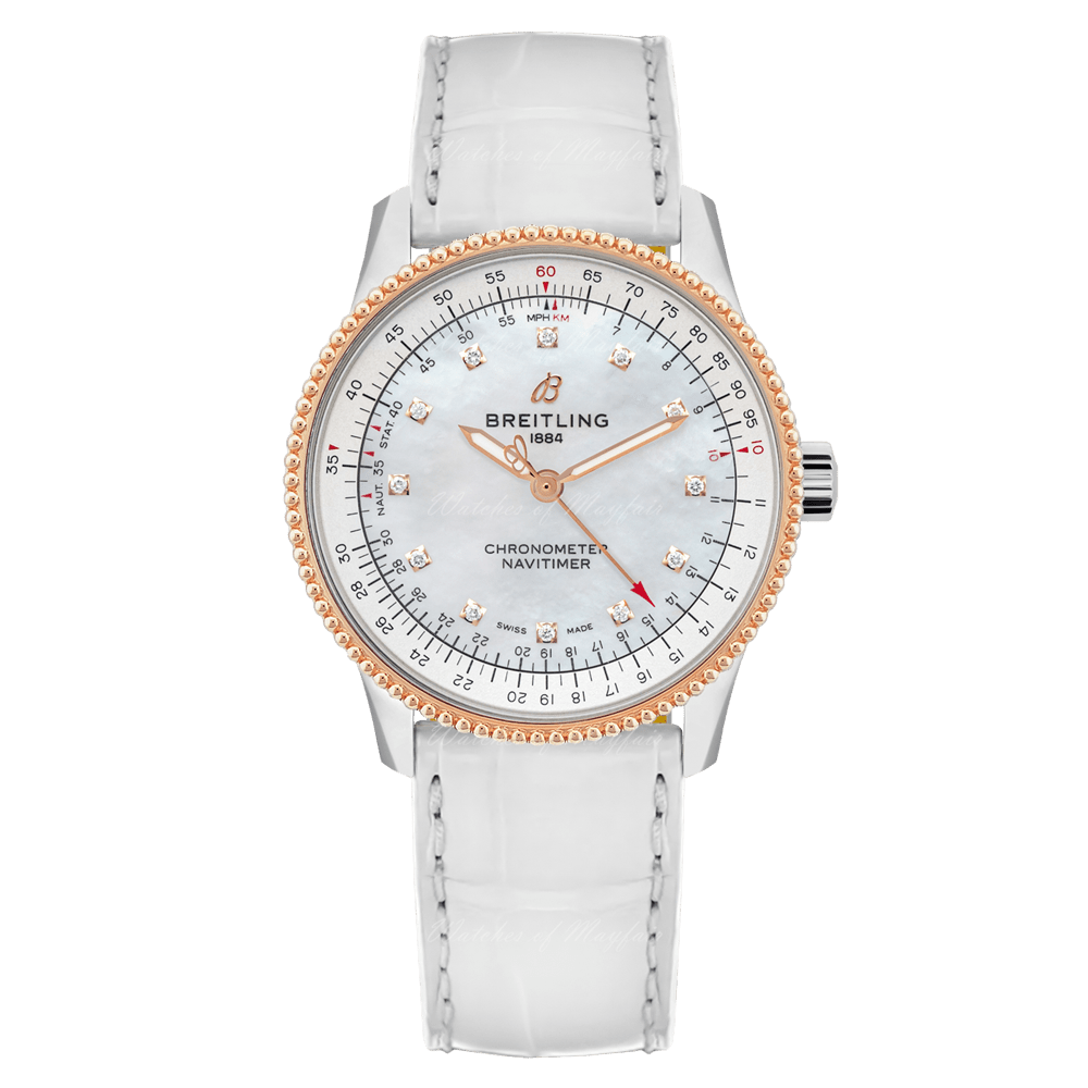 Breitling Navitimer Automatic 35 Mother of Pearl Dial White Leather Strap Watch for Women - U17395211A1P3