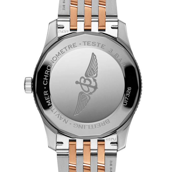 Refined and elegant, the Navitimer Automatic 41 combines the historic appeal of a true icon with the sophistication of a contemporary timepiece. Available in a variety of materials including stainless steel and 18k red gold, the 41 mm case features a beaded bezel and a range of elegant dial colors. Offered either with a matching bracelet or alligator strap that fits both a stainless-steel pin or folding buckle, the Navitimer Automatic 41 is powered by the Breitling Caliber 17, a COSC-certified chronometer.