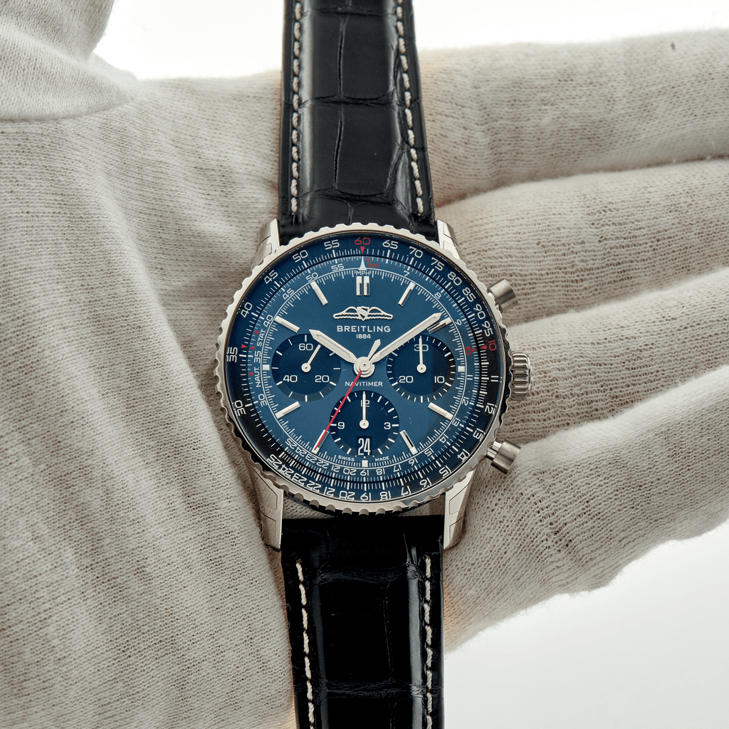 Celebrities of the day such as Miles Davis and Serge Gainsbourg were devotees, proving that the Navitimer had style as well as function. There have been many iterations of Breitling’s icon since its debut 70 years ago, but this new Navitimer captures its most classic features, while enhancing them with modern refinements. A flattened slide rule and a domed crystal create the illusion of a sleeker profile. Alternating polished and brushed metal elements give a lustrous, yet understated finish. Most notably, new colors in shades of blue, green and copper, define the updated dial options. And if there is one update sure to spark nostalgia, it’s the return of the AOPA wings to their original position at 12 o’clock. For 70 years, Breitling’s original pilot’s watch has been beloved by aviators and tastemakers in equal measure. Worn by astronauts in space and the biggest stars on earth, it is Breitling’s most iconic timepiece and one of the most recognizable watches of all time.