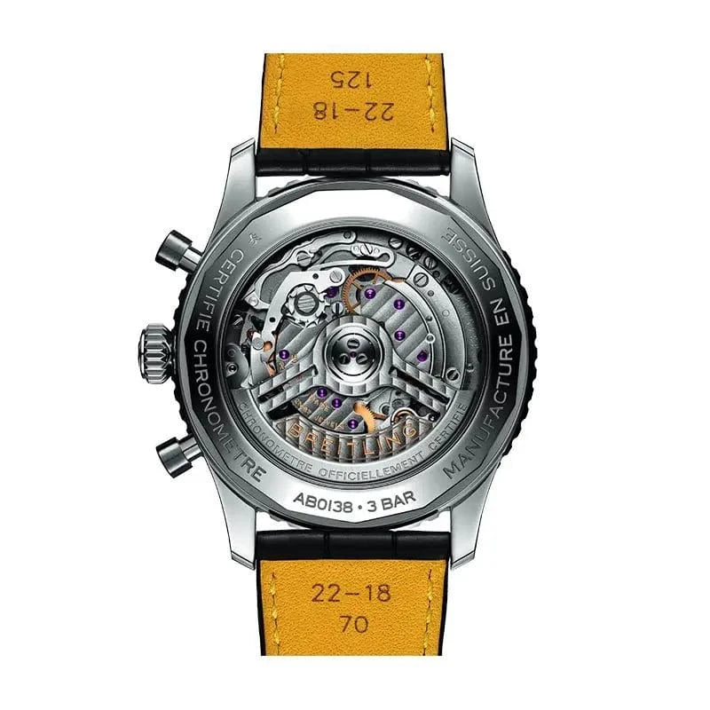 • Breitling in house caliber B01 beats at 28,800 vph, contains 47 jewels & has an approximate power reserve of 70 hours.