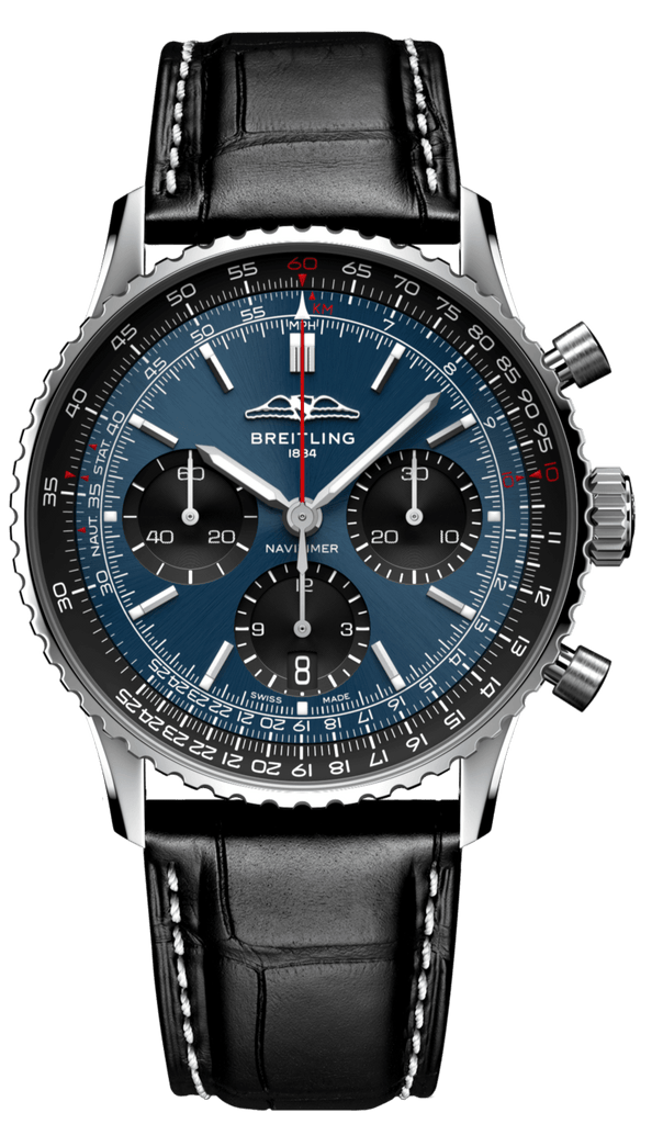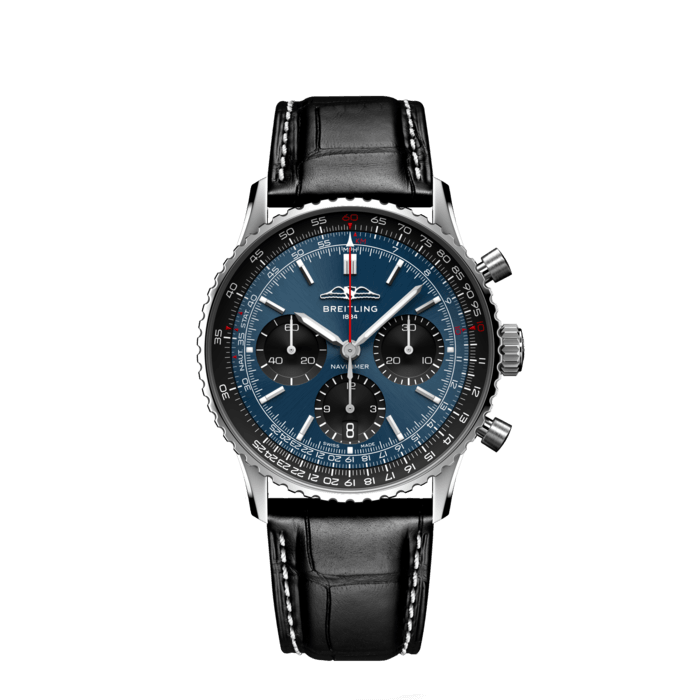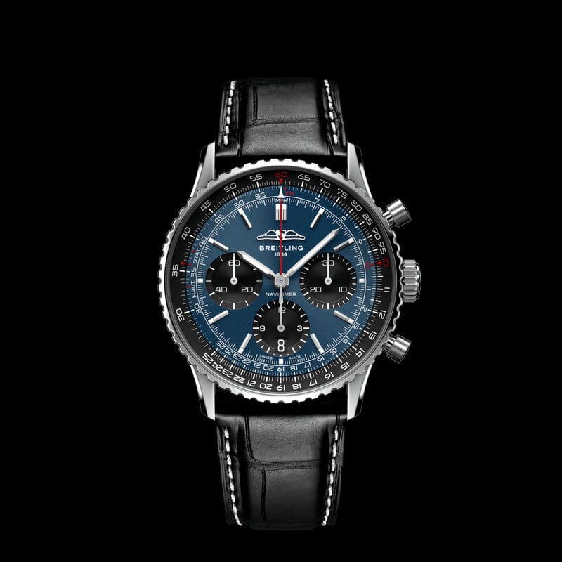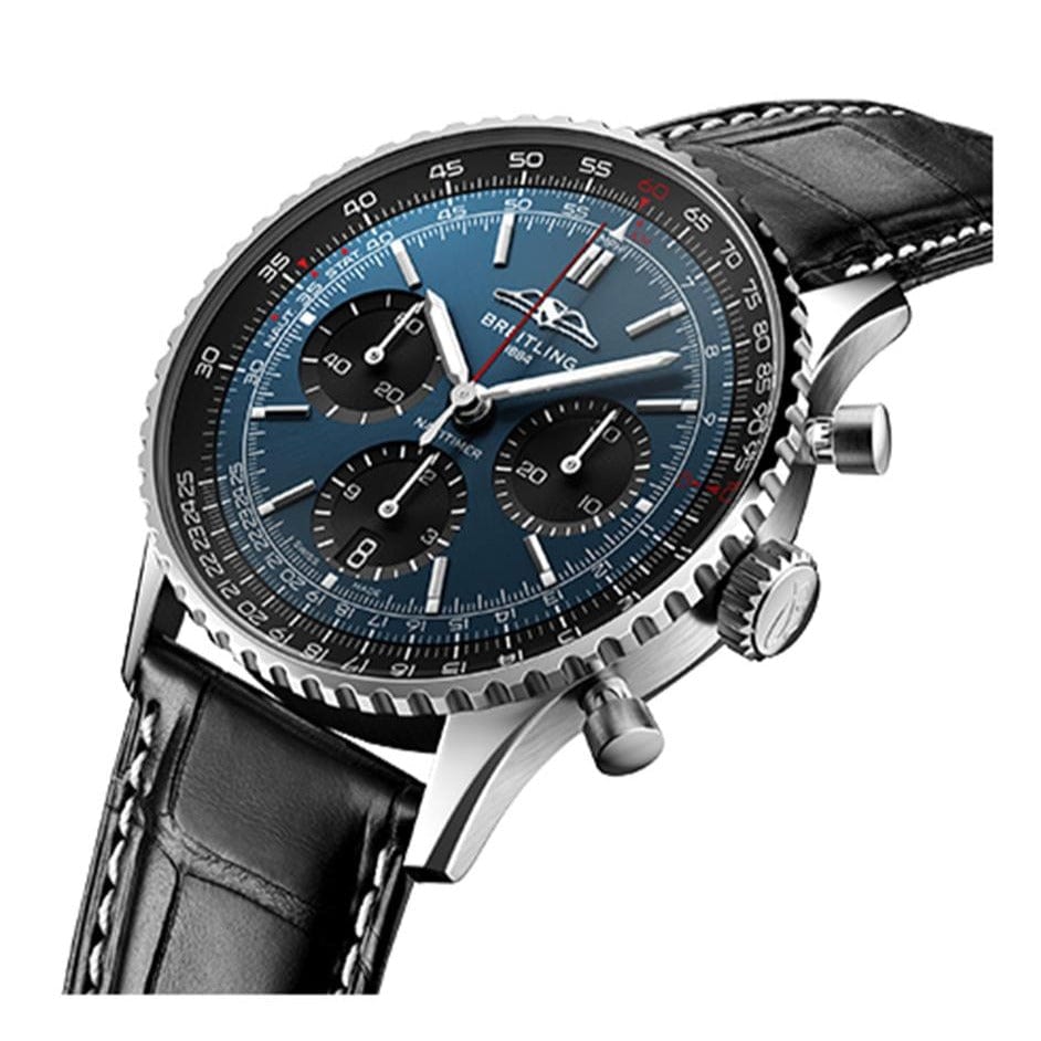 Breitling Navitimer B01 Chronograph 41 Blue Dial Black Leather Strap Watch for Men - AB0139241C1P1