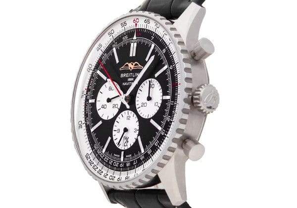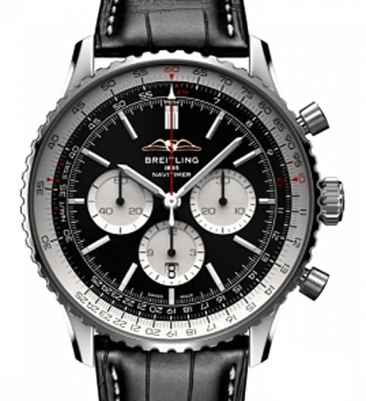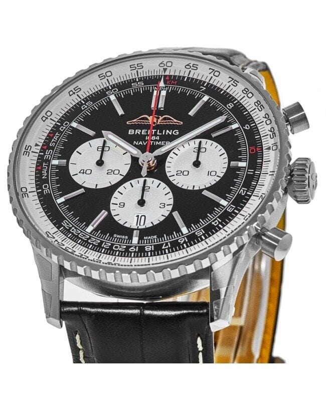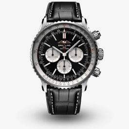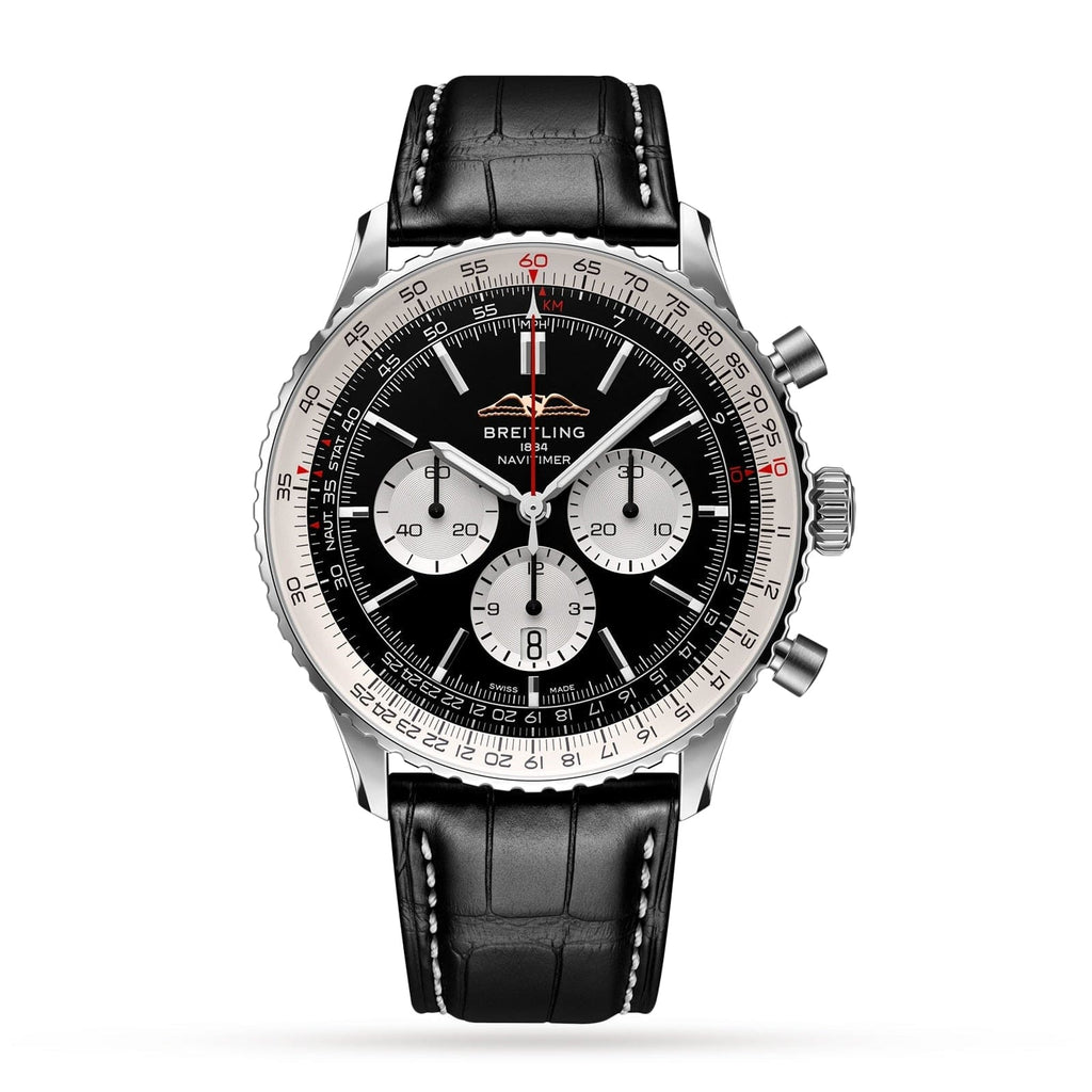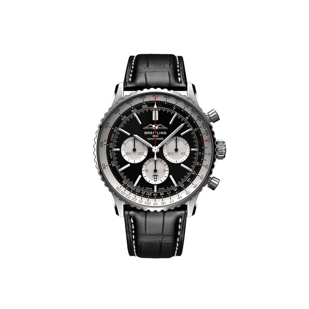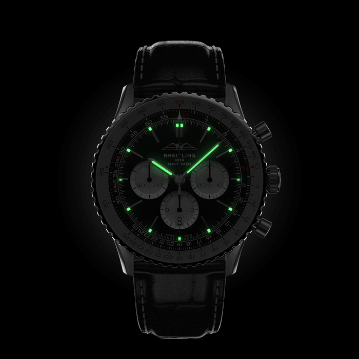 Breitling Navitimer B01 Chronograph 46 Black Dial Black Leather Strap Watch for Men - AB0137211B1P1