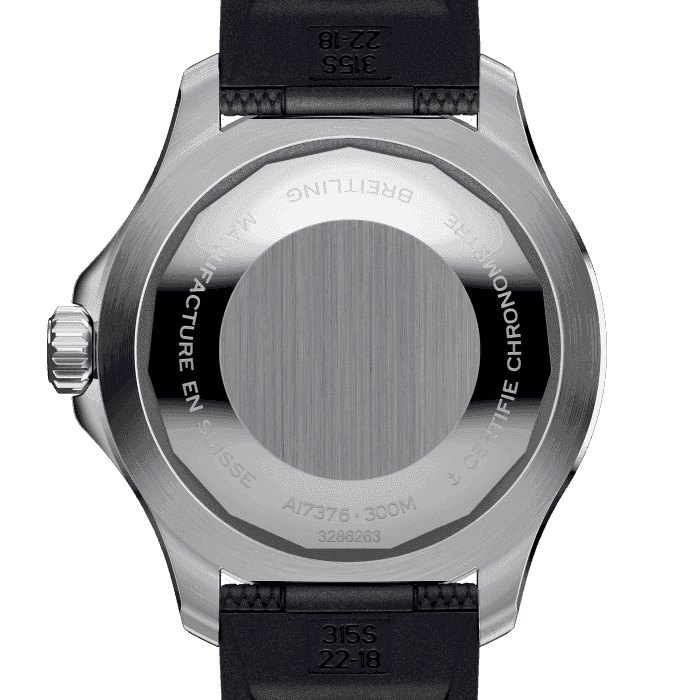 - Breitling calibre 17, COSC Certified, 28,000 vph (4Hz), 26 jewels, approximate power reserve of 38 hours.