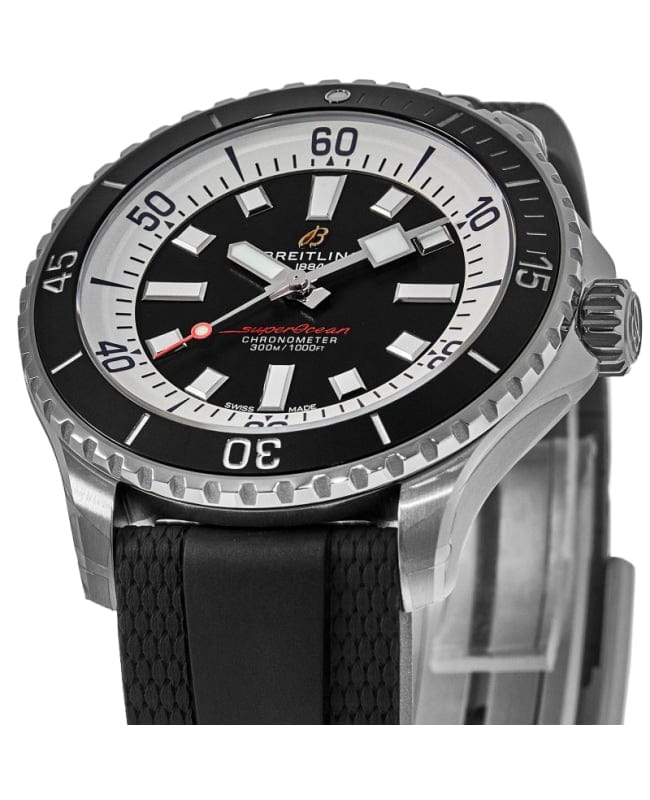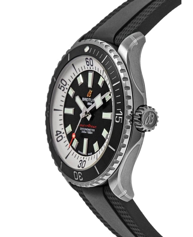 The new Superocean retraces the Slow Motion's celebrated design codes, while adding modern features, like a ceramic-inlayed bezel and brightly colored dials. Broad hands and indexes in luminescent Super-LumiNova® allow for easy readability underwater. The watch is water resistant to 300 m (1000 ft), as well as being shock-, sand- and saltwater-resistant. The bronze version uses a special alloy that has excellent resistance to corrosion, yet will still develop a subtle patina over time that makes the watch even more unique. The two strap options (rubber and metal bracelet) have a folding clasp that allows for micro-adjustments of up to 15 mm for easy wear over rashies and wetsuits. Its scratch-proof ceramic inlayed bezel will never wear or fade. For safety, the bezel is uni-directional on most sizes and bi-directional with a patented lock on the 46 mm. Best of all, this is no longer strictly a dive watch—surf with it, swim with it, hit the beach bar with it, then wear it out to dinner. The Superocean perfectly balances the nostalgia of its heritage with a fresh new look.