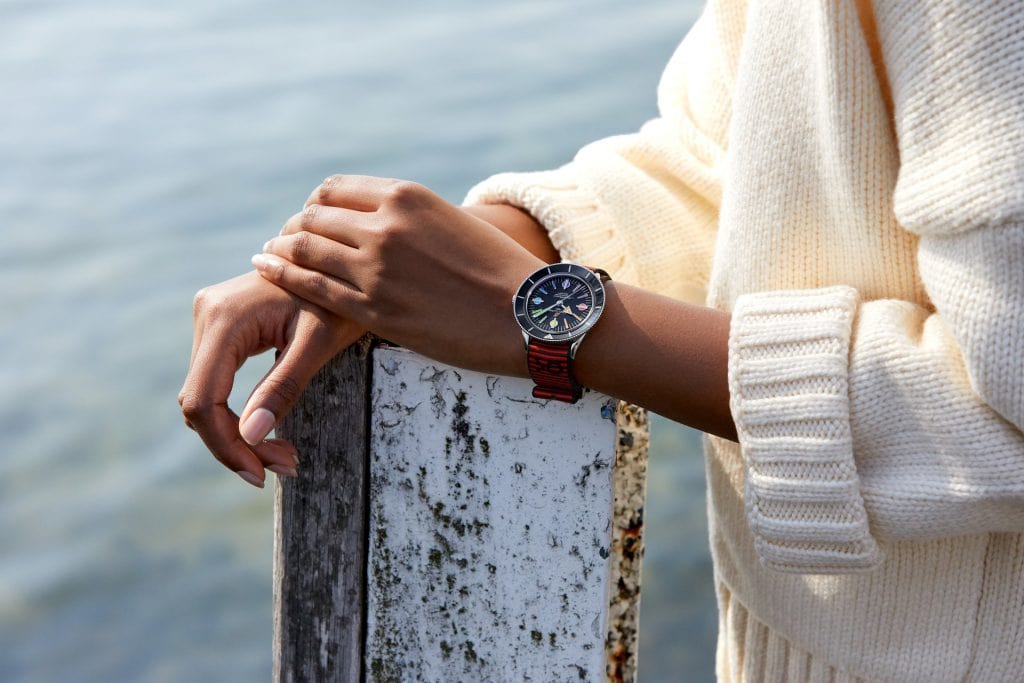 The Superocean Heritage ’57 Capsule collection pays tribute to the original 1957 SuperOcean and the cool, laid-back surfing lifestyle of the 1960s. Available in a variety of materials including stainless steel and 18k red gold, the 42 mm case features two signature elements of the original SuperOcean: a concave bidirectional ceramic bezel and a dial featuring oversized indices.