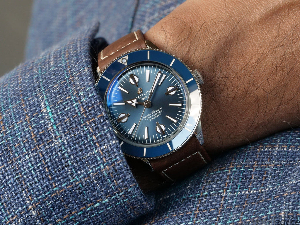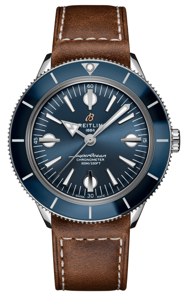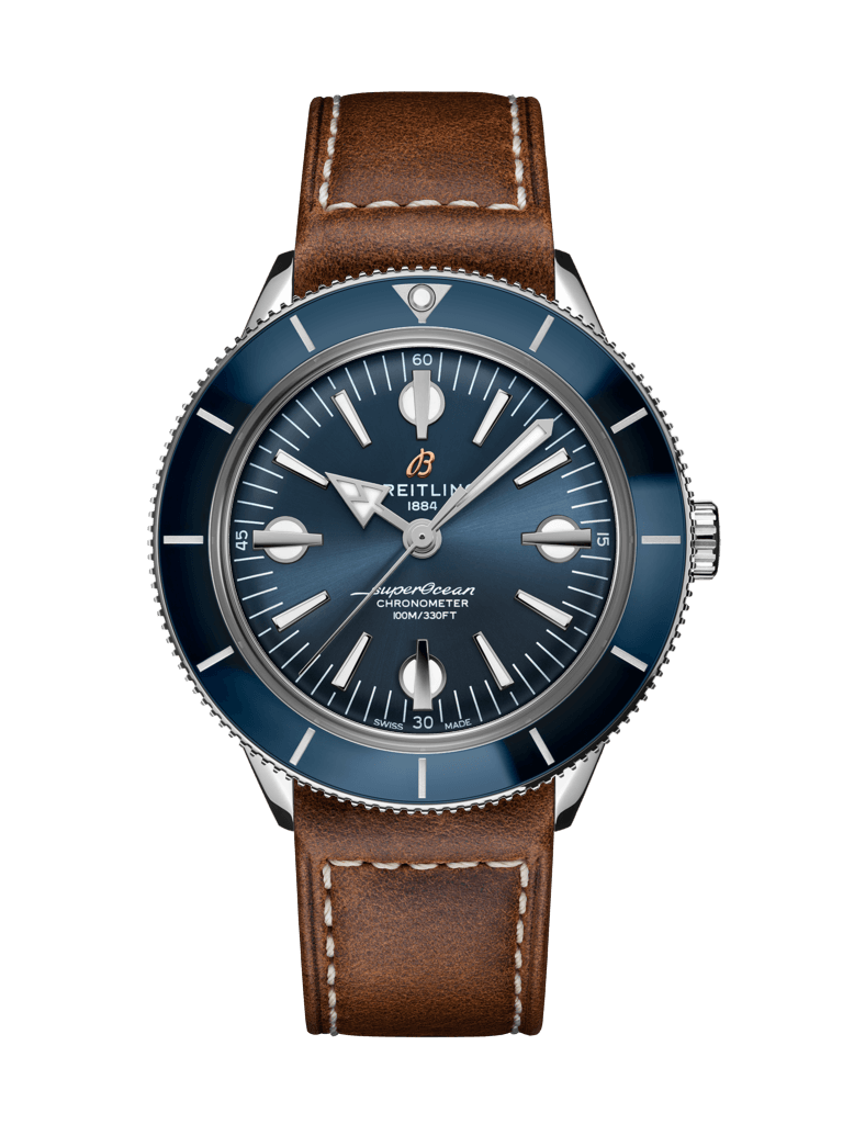 Paired with a mesh bracelet or a black, brown or gold calfskin leather strap that fits both a stainless-steel pin or folding buckle, the Superocean Heritage ‘57 is powered by the Breitling Caliber 10, a COSC-certified chronometer.