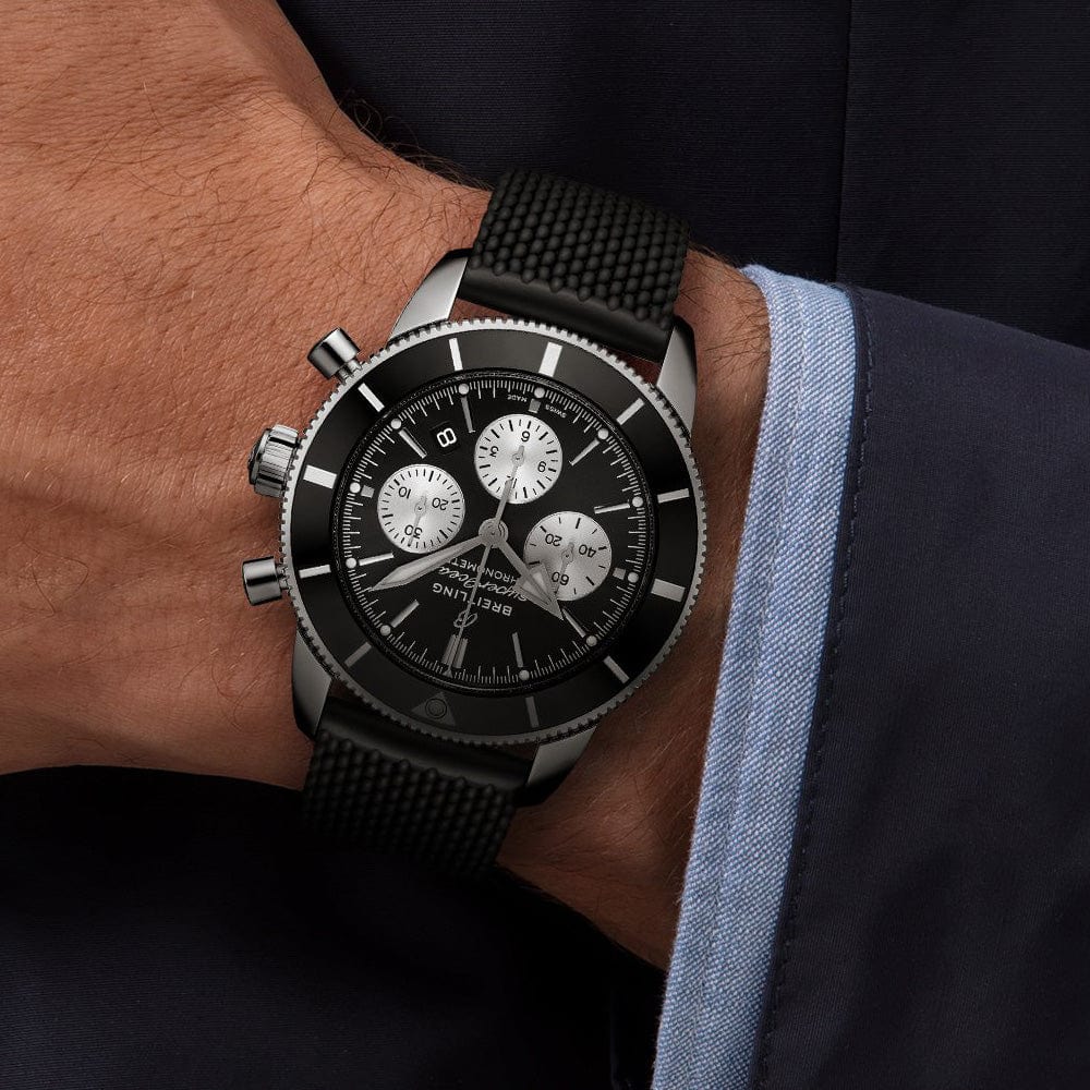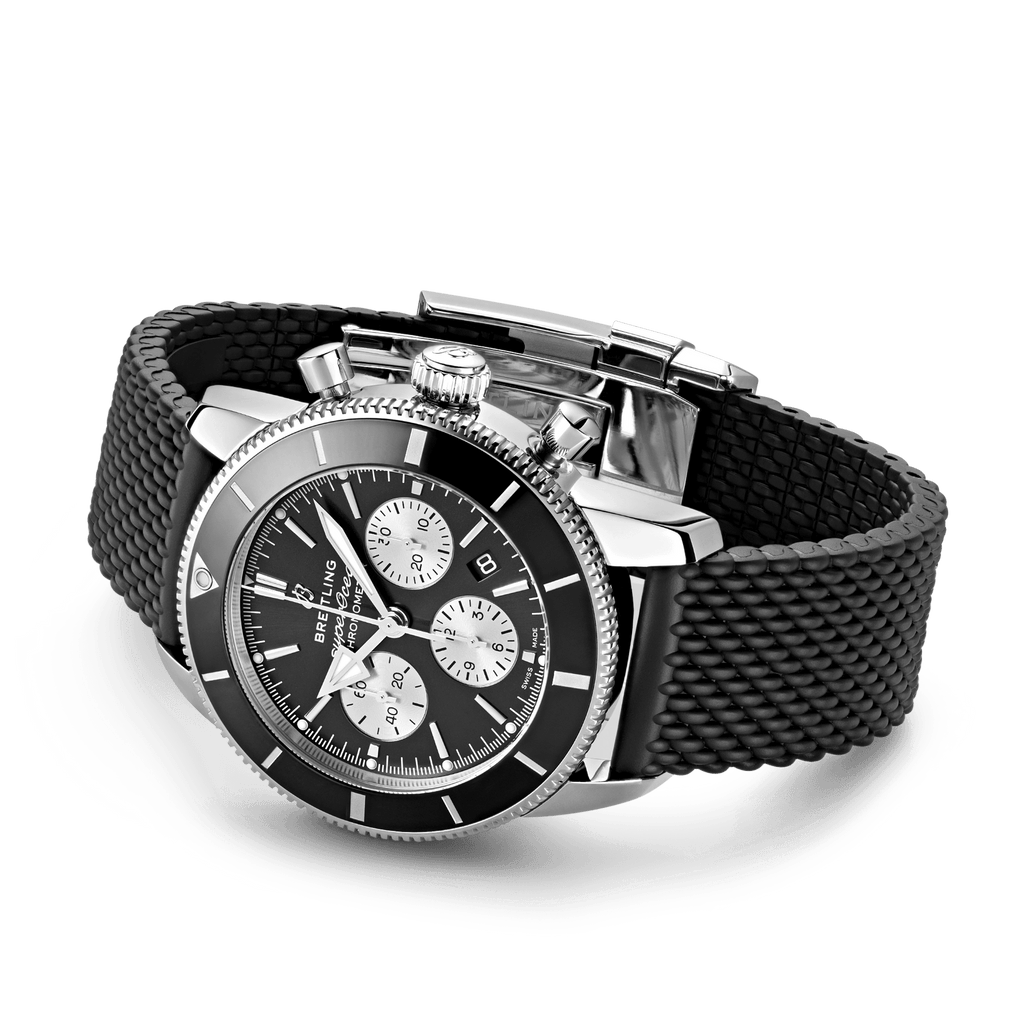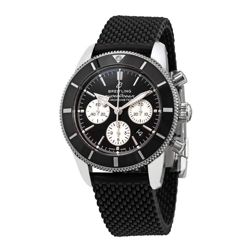 Breitling Superocean Heritage B01 Chronograph 44 Black Dial Black Mesh Bracelet Watch for Men - AB0162121B1S1