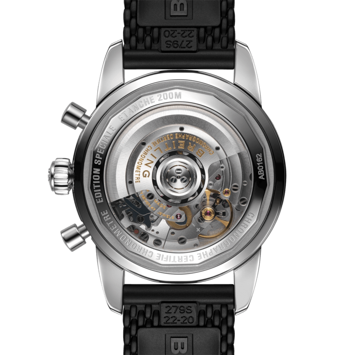 • Breitling Caliber B01, beats at 28'800 vph, contains 47 Jewels & has an approximate power reserve of 70 hours.