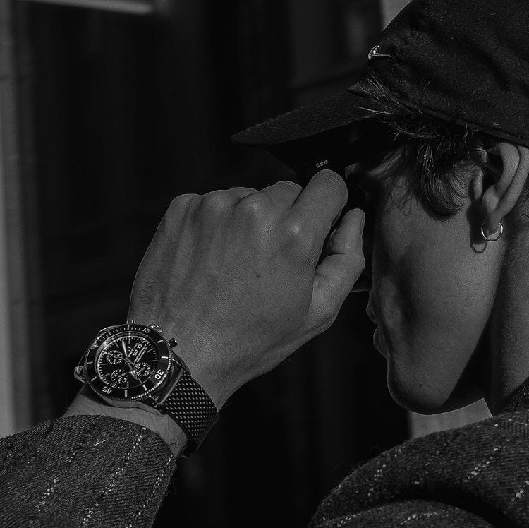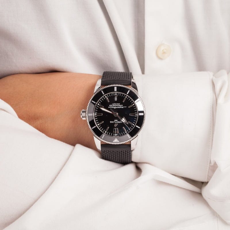 Available in a variety of sizes and materials including stainless steel and 18k red gold, the Superocean Heritage B20 Automatic features a range of black or blue dials. Offered either with a matching mesh bracelet, or a “mesh-styled” rubber strap fitting a folding buckle, this Superocean Heritage is powered by the Breitling Manufacture Caliber B20, a COSC-certified chronometer based on the Tudor Caliber MT5612.