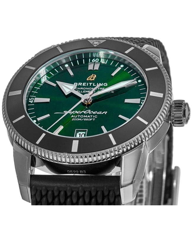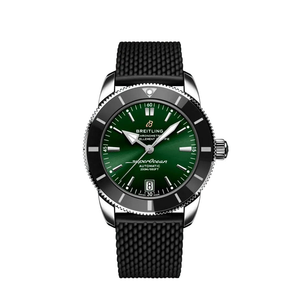 Available in a variety of sizes and materials including stainless steel and 18k red gold, the Superocean Heritage B20 Automatic features a range of colored dials. Offered either with a matching mesh bracelet, or a “mesh-styled” rubber strap fitted with a folding buckle, this Superocean Heritage is powered by the Breitling Manufacture Caliber B20, a COSC-certified chronometer based on the Tudor Caliber MT5612.