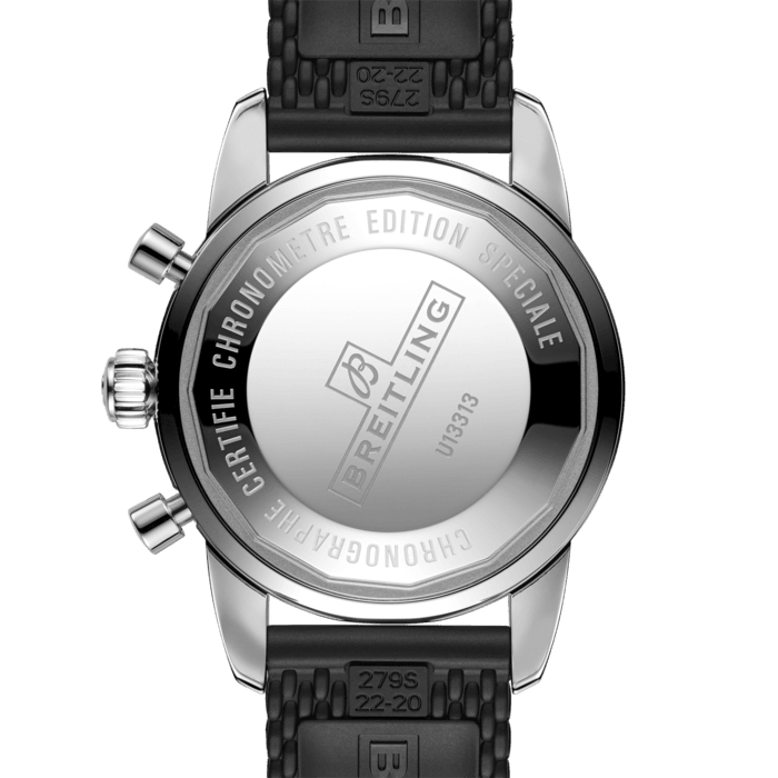 Featuring the iconic triangular-shaped hands as well as a unidirectional bezel with a polished ceramic ring, the Superocean Heritage is an elegant looking diver’s watch. Available in a variety of materials including stainless steel and 18k red gold, the Superocean Heritage Chronograph 44 features a range of colored dials. Offered either with a matching mesh bracelet, or a “mesh-styled” rubber strap fitting a folding buckle, this Superocean Heritage is powered by the Breitling Caliber 13, a COSC-certified chronometer.