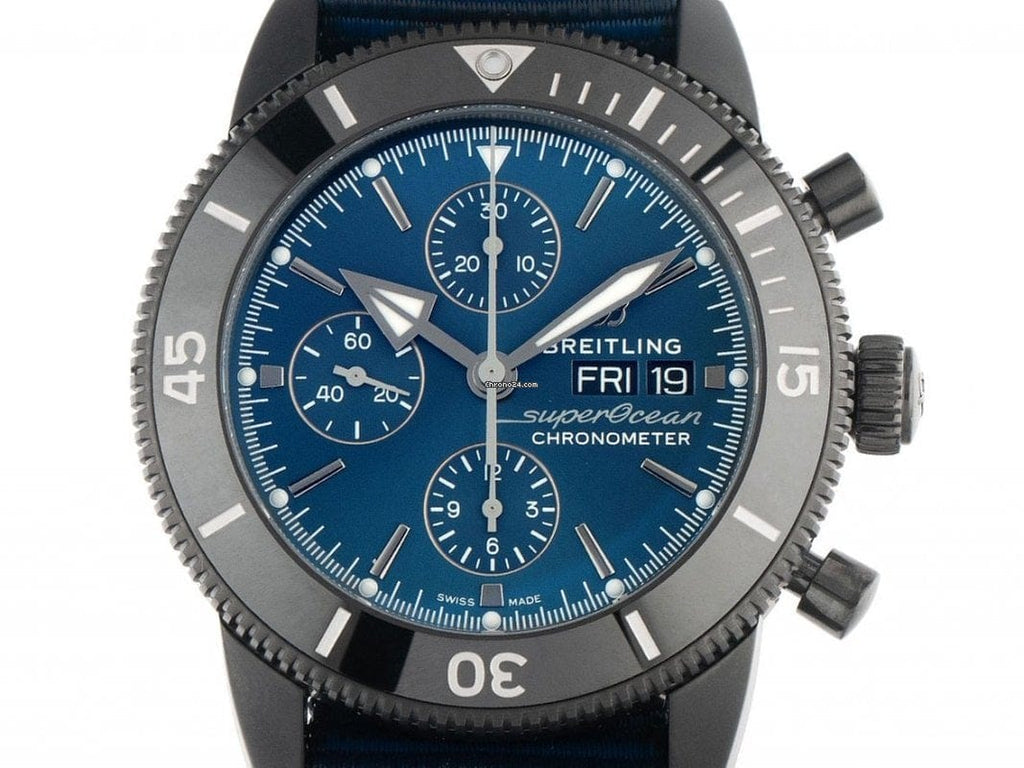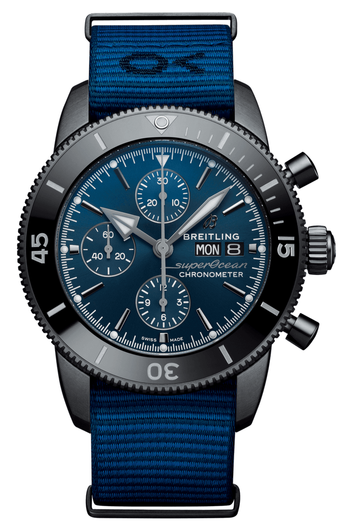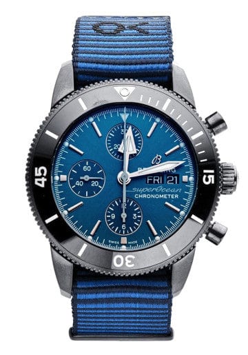 Breitling Superocean Heritage Chronograph 44 Outerknown Blue Dial Blue NATO Strap Watch for Men - M133132A1C1W1