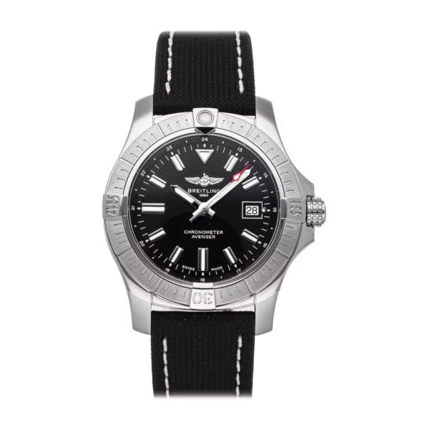 This Breitling Avenger Automatic - A17318101B1X2 watch has a 43mm stainless steel case. This model also features an automatic movement, Leather strap, sapphire crystal and a Black dial. It has a water resistance of 300m