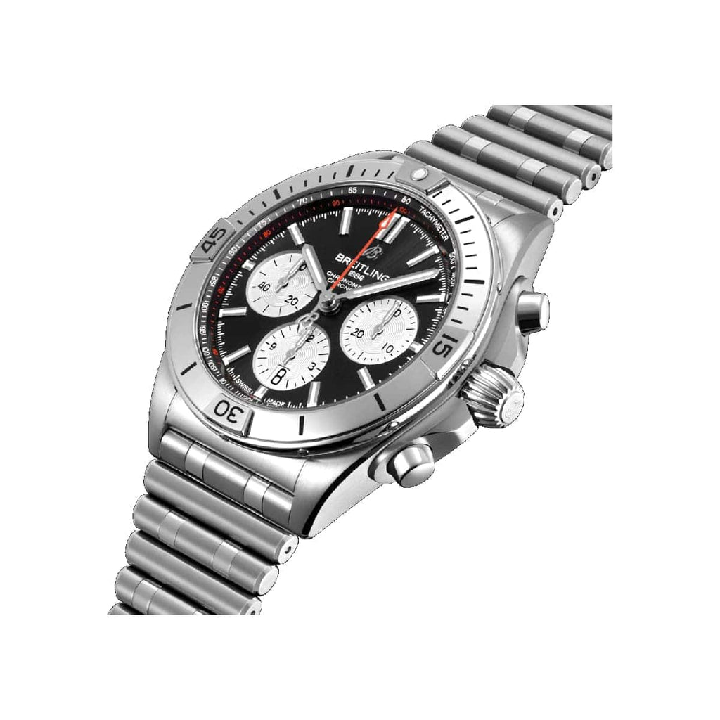 Breitling Chronomat B01 42mm Black Dial Silver Steel Strap Watch for Men - AB0134101B1A1
