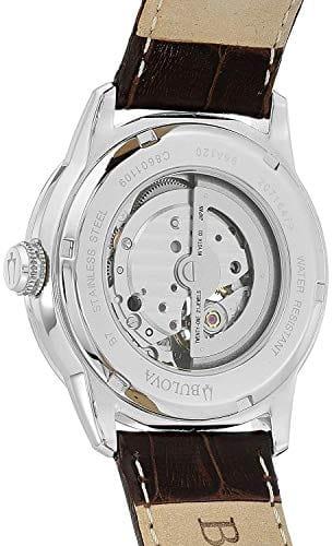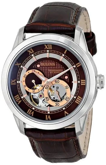 Bulova Classic Skeleton Automatic Brown Dial Brown Leather Strap Watch for Men - 96A120