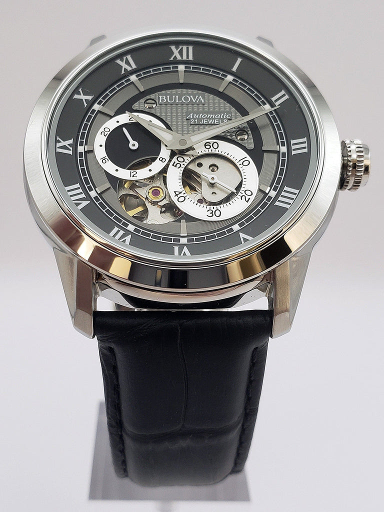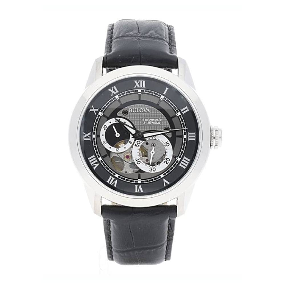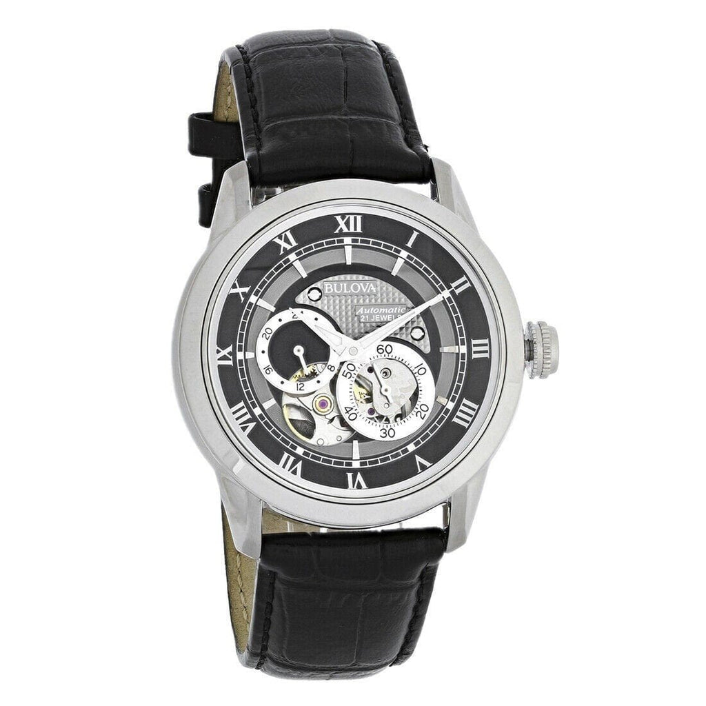 Bulova Sutton Men's Automatic Stainless Steel Black Leather Strap Watch 96A135
