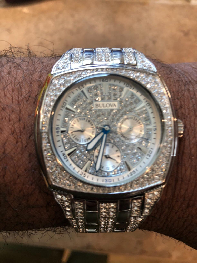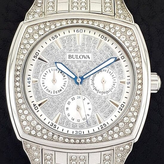 - From the Bulova Men's Crystal Collection, make a brilliant statement with a watch detailed with authentic crystals.